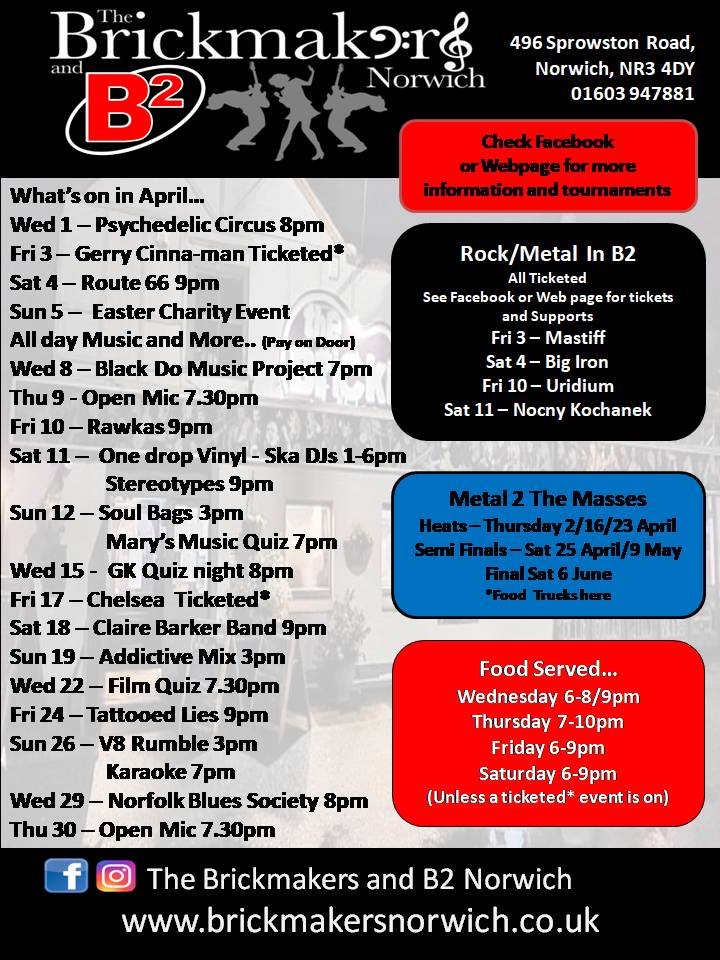 Norfolks loudest 80’s Rock Pop Band are back at the Brickmakers for another night of head banging classics.