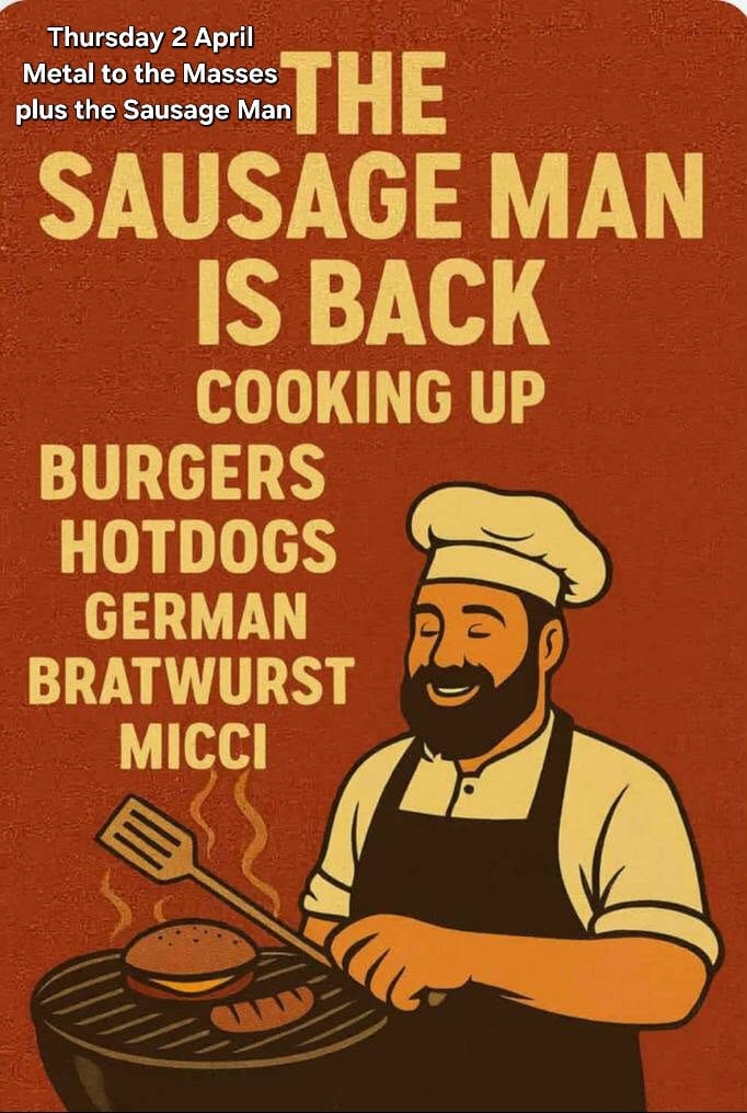 Enjoy these bands with A Burger Or Hotdog from THE Sausage Man this Thursday!!