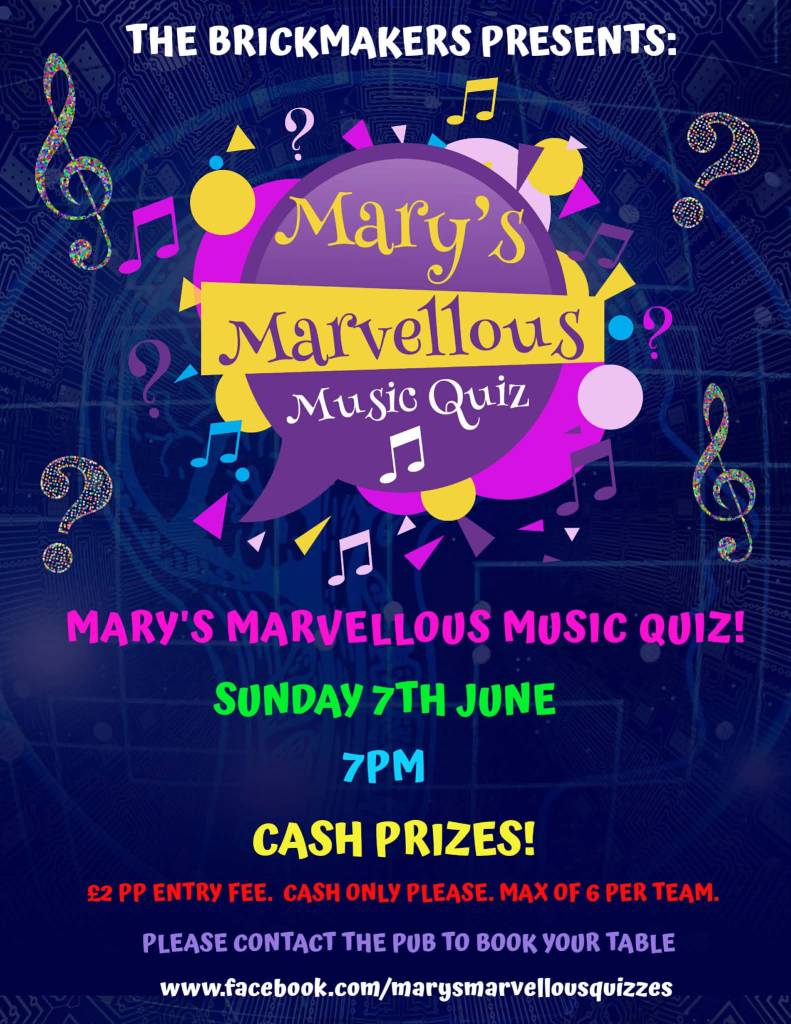 Mary’s marvellous music quiz! a fun music quiz with music intros, outros, trivia rounds and lots more!